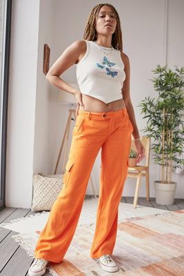 Urban Outfitters Archive Orange Linen Low Rise Cargo Trousers Urban Outfitters Uk